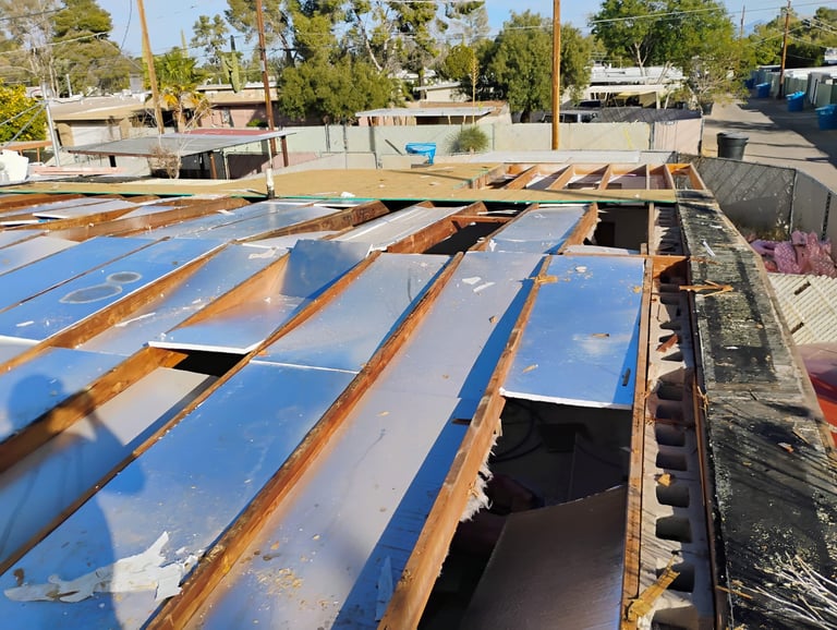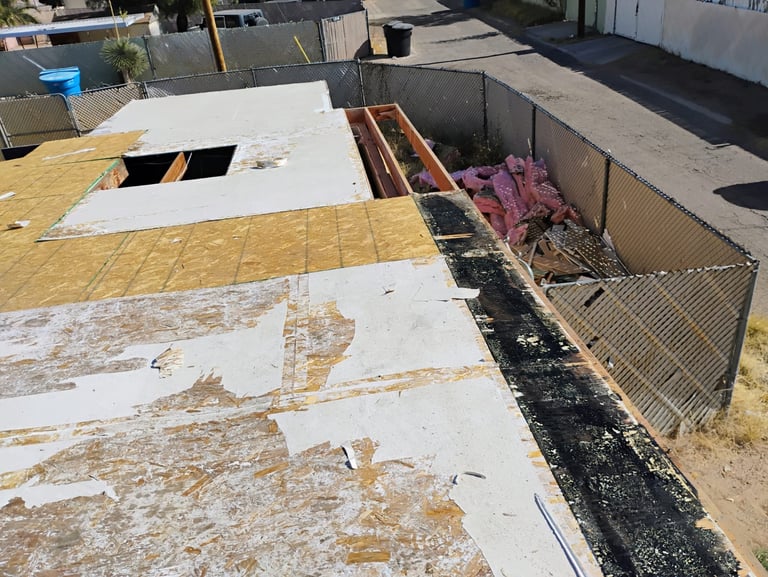 If you are in a situation where a bad storm hits your roof contact us and we'll tarp your roof to avoid any extra water damage